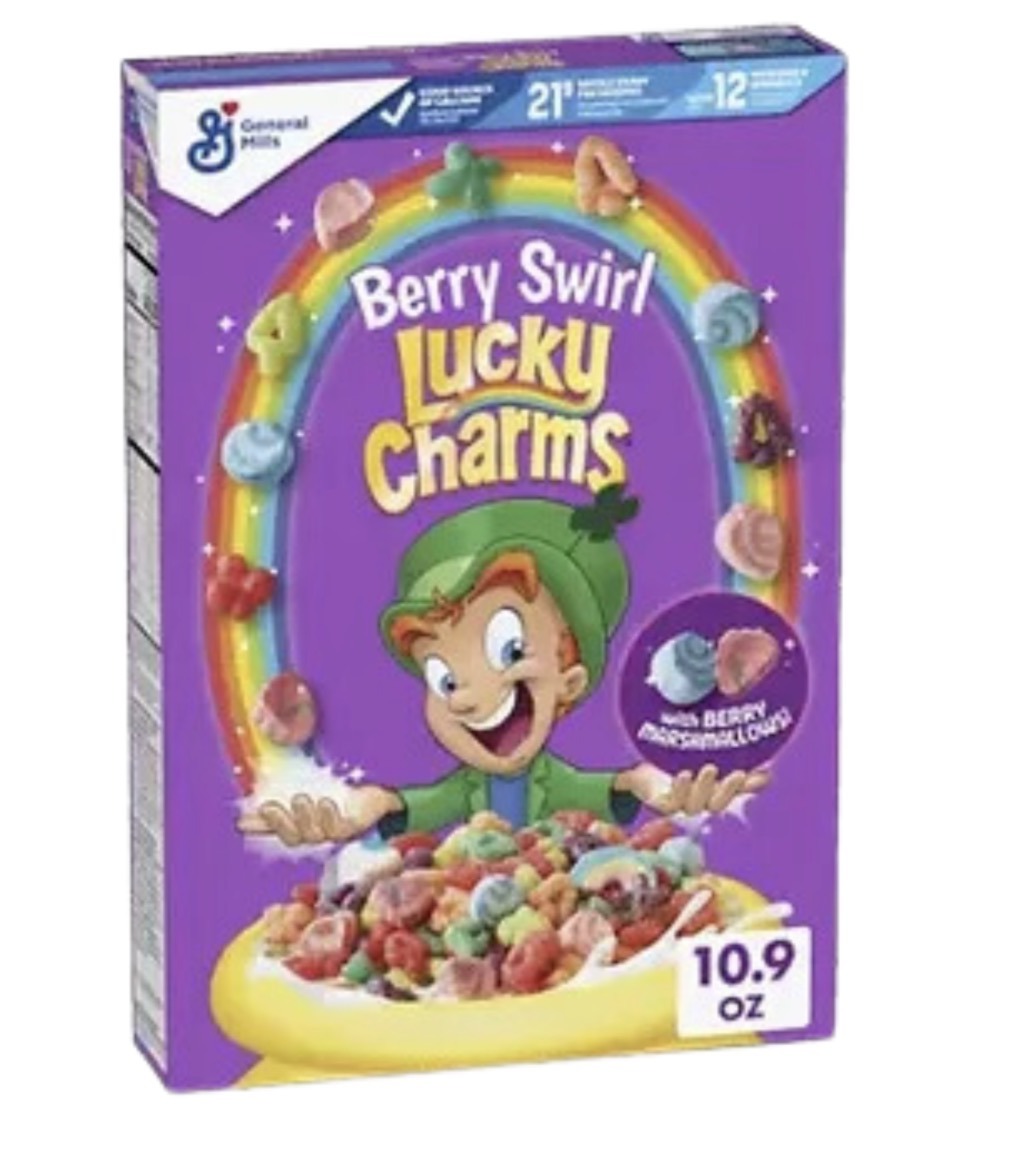 Lucky Charms Berry swirl sweetened corn with marshmallow